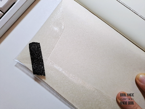 2. 책 표지를 감싼 후에 위, 아래를 번갈아가며 마주접은 부분에 테이프를 붙인다.
