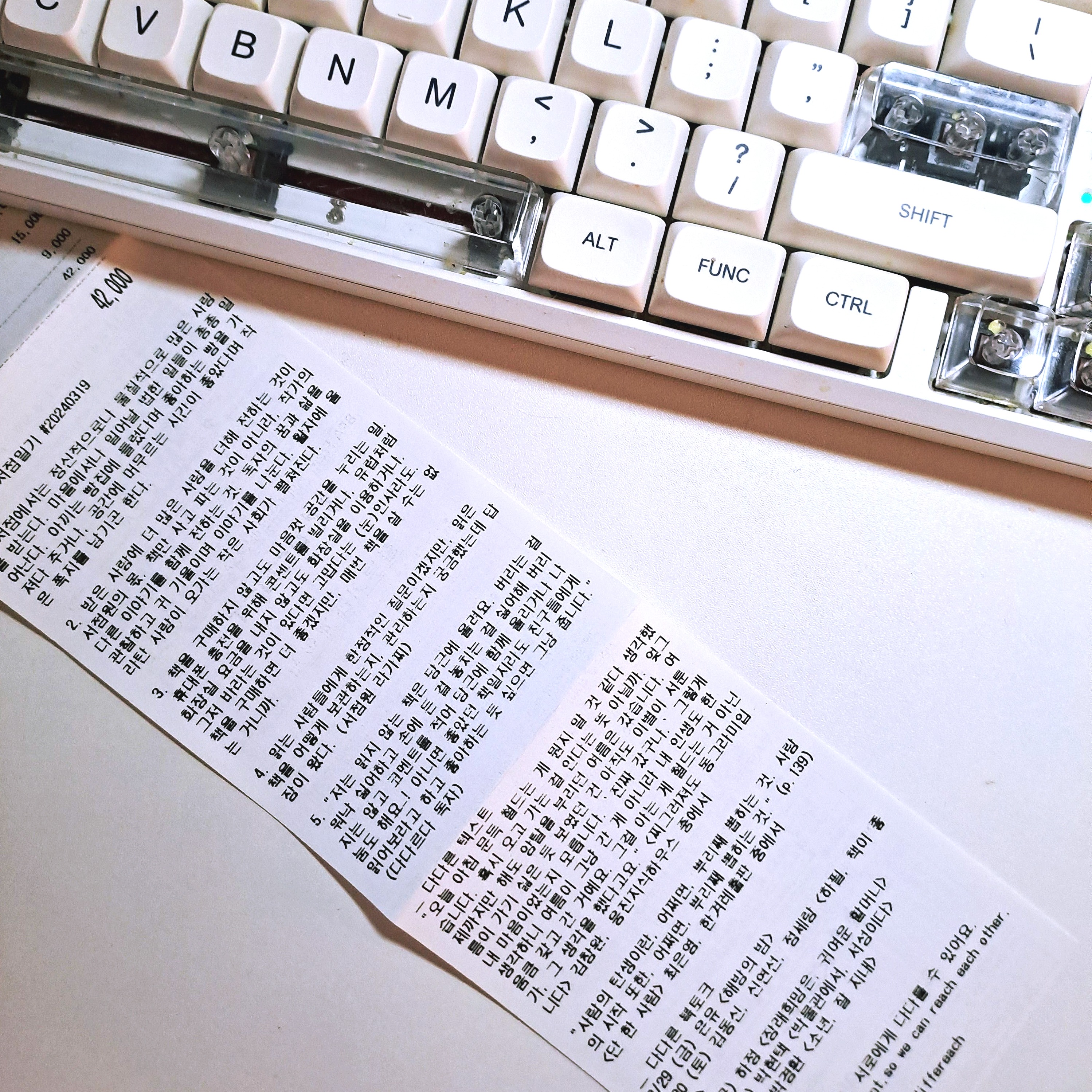 결제를 하면 "서점 일기에요"하고 긴 영수증 프린트를 주시는데 책을 사고 덤으로 읽을 거리를 더 받는 느낌이라