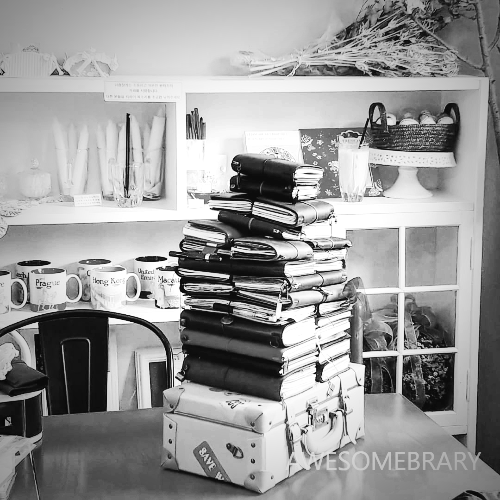 용도 별로 여러 권 씩 갖고 있는 헤비 유저까지 자신의 트래블러스 노트북들을 몽땅 가지고 나와서는,