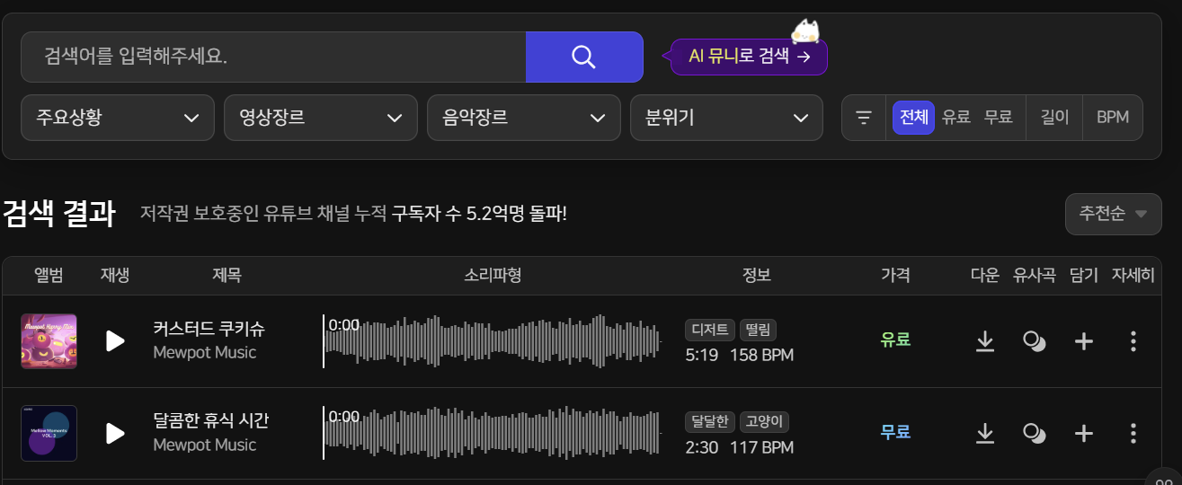 내가 들으려고 만드는 영상에 음원을 넣으려다보니