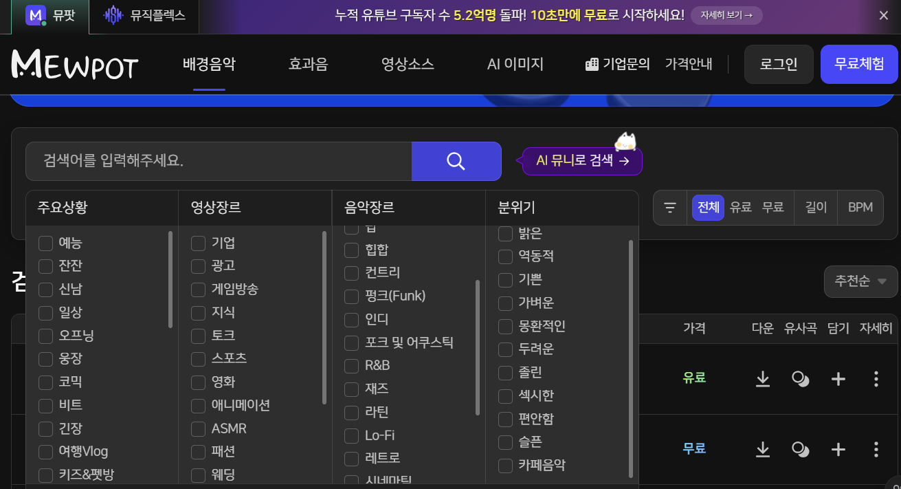 제가 쓰는 건 배경음악이니 이쪽을 먼저 둘러보자면