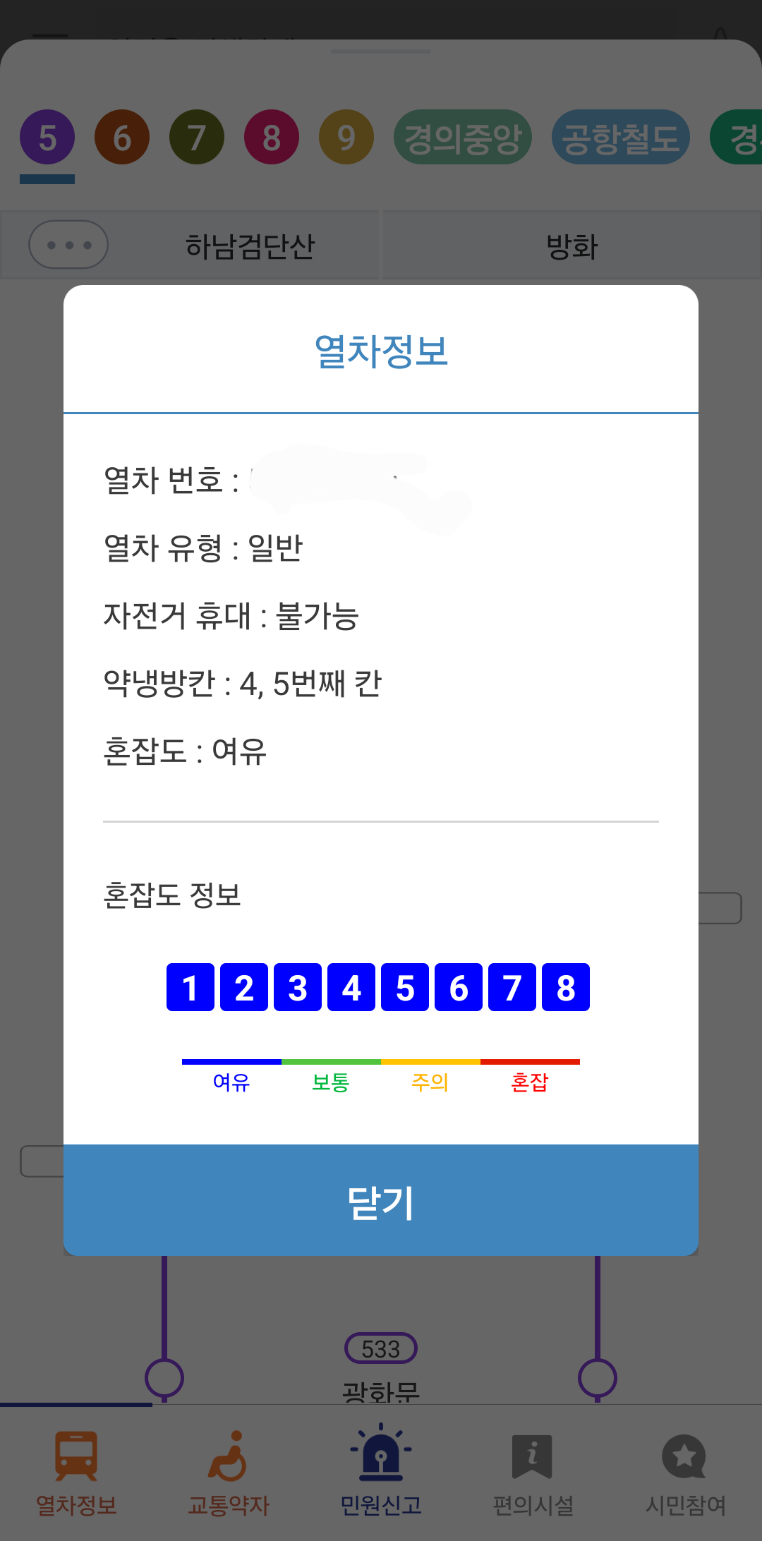 4.열차정보로 칸 별 혼잡 상태로 내가 탈 자리를 찾아서 서둘러 이동하기