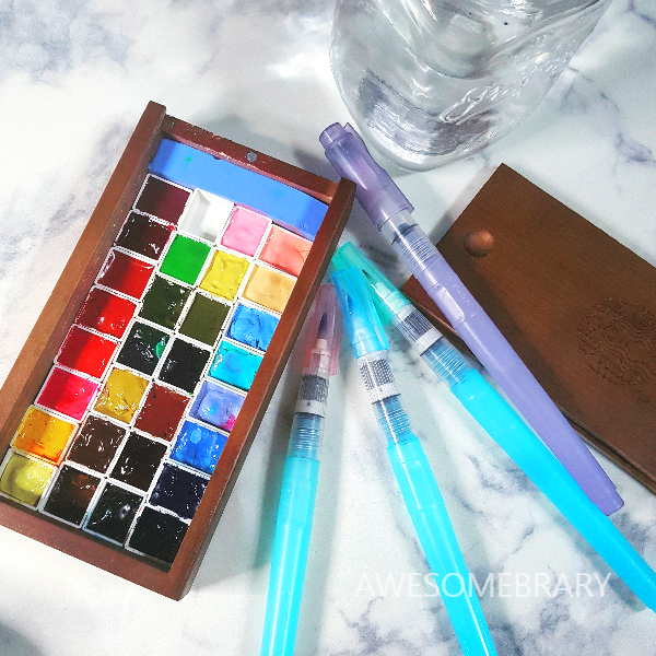 다이어리를 가지고 카페나 외부에서 그림을 그리는 상황을 생각하면 물을 써야하기 때문에 불편한 것이 사실이에요.