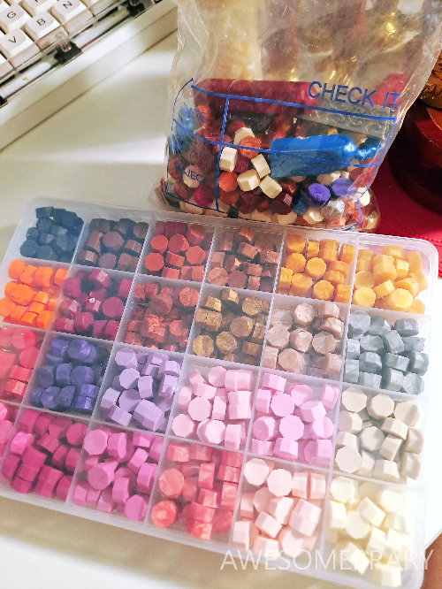 그리하여 스탬프 만큼이나 다양한 색의 왁스 실링들을 이렇게 보관하고 있습니다.