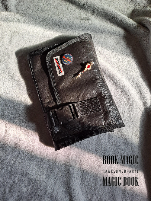 가방으로 쓸 때는 불편하던 플립 덮개도 가로 폭이 넓은 책을 넣을 때 커버로 감싸면 여유롭게 수납이 가능하기에 살려두었지요.