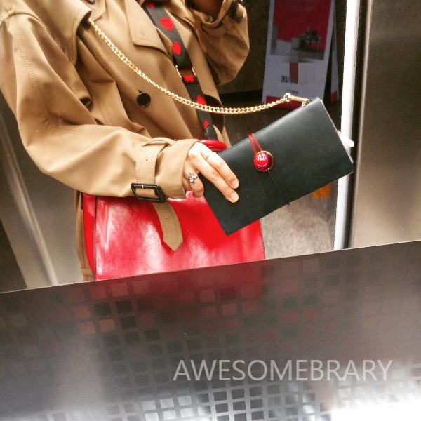 그래서 짧은 체인이 아니라 길게 빼서 크로스 백처럼 멜 수 있게 고안했습니다.